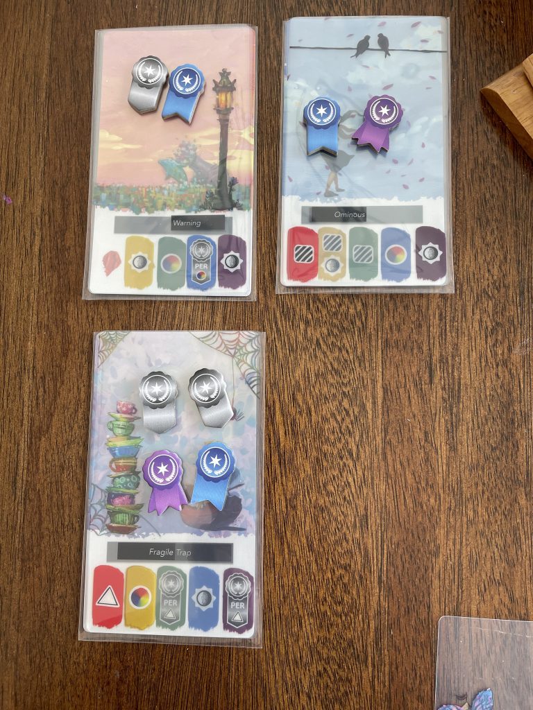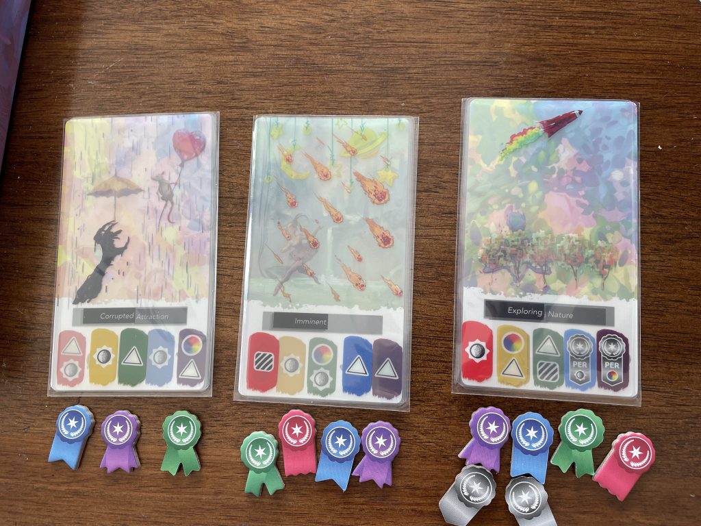 In the game Canvas, you play as an artist competing against your fellow players. You draw a series of transparent cards with images on them, then layer 3 of the cards together to create a unique picture. Icons at the bottom of your painting will show if you’ve met any of the requirements to earn points. Each player creates 3 pieces of art during the game, and when the scoring is done, the player with the most points wins.
